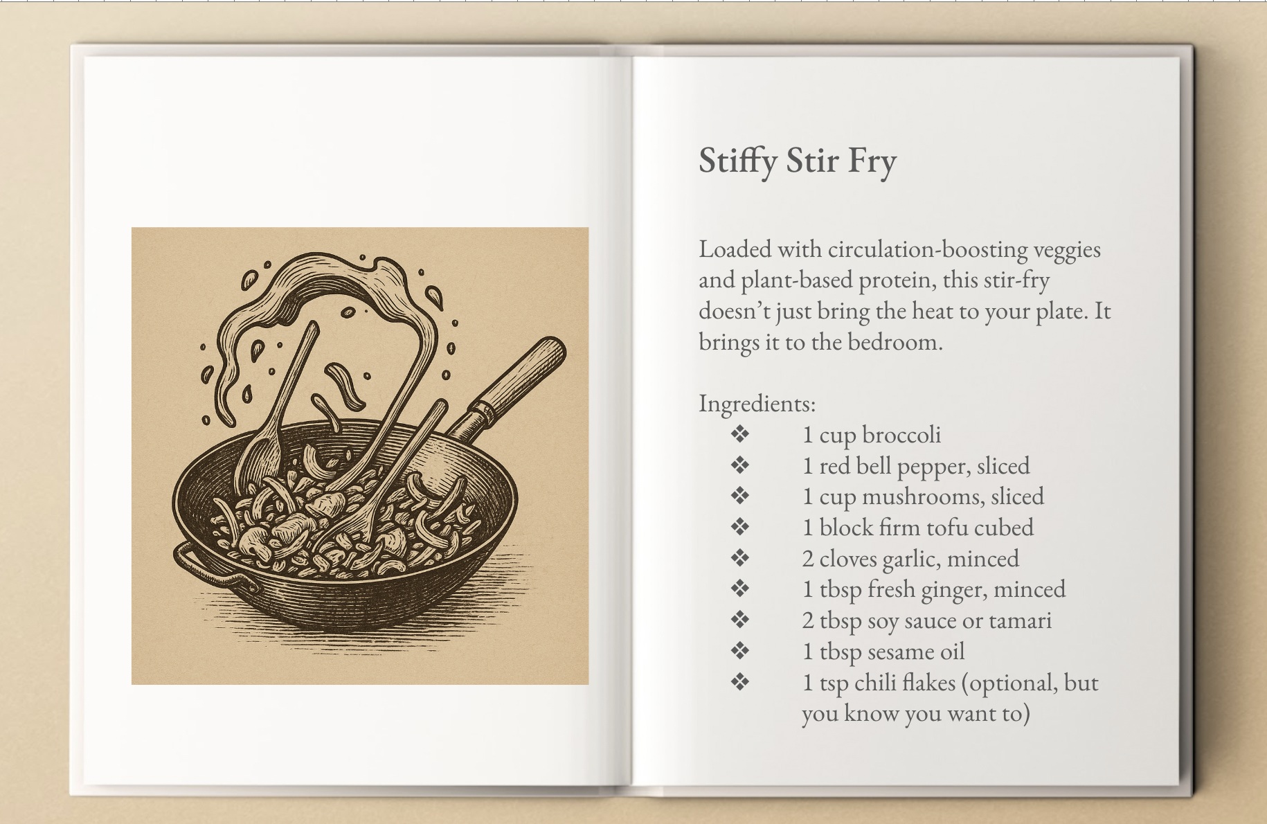 So I create a vegetarian cookbook with recipes scientifically proven to help spice up your sex life and help with the hard fight.